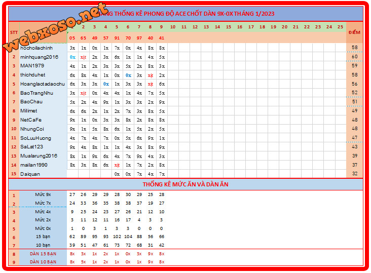 ĐẶC BIỆT DÀN ĐB 9X-0X VÀ LOẠI 5 SỐ ĐB THÁNG 1/2023